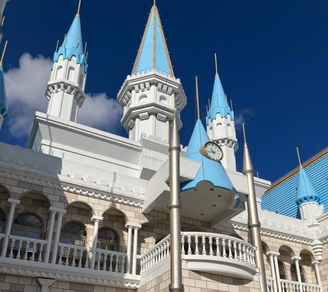 と思ったところで、突如出現する水色のとんがり屋根のキャッスル。