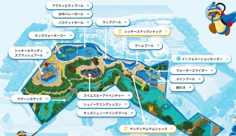 このうち小学校低学年くらいまでのちびっ子が楽しめるのは、パーク奥側にあるアクティビティプールとスプラッシュプールでしょう。